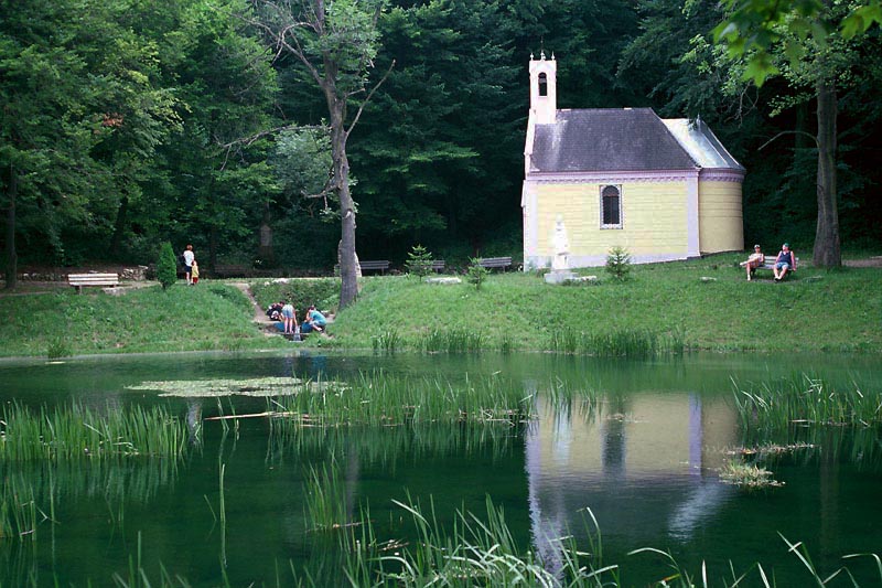 Helyeim a Hazában: Szent Gellért kápolna, Bakonybél. Kultikus hely, itt töltötte hét évi remeteségét Szent Gellért, mielőtt István király Csanád püspökévé nevezte ki. A kápolna 1825-ben épült, előtte van egy forrás, medencével, több kifolyóval. A kápolna mellett egy hegyi ösvény nyomán kálvária vezet a dombtetőn lévő kőkeresztekhez. Kultikus hely ez nekünk is, 35 éven belül jó néhányszor megfordultunk itt, a képeket is szándékosan több időből válogattam.