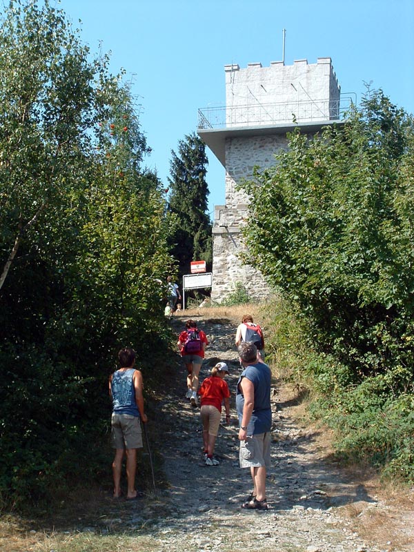 Ki gondolta volna, hogy a rendszerváltás a turisták szent gráljára az Országos kék túra útvonalára is hatással lesz ? Az első képen a Velem fölötti Szent Vid-hegyen álló hasonló nevű kápolna melletti, korábbi végpontnál pózolunk Zoli barátommal. 1989-től nyílt arra lehetőség, hogy a határsávban húzódó útvonalon a túra egészen az Írottkő-kilátóig vezessen. A második képen ezen az útvonalon járunk. Az ösvény egykor a határőrség járőrözési útvonala volt, a képen tőle jobbra kb. 30 méterre ott jártunkkor (2003) még meglátszottak a műszaki zár elbontásának nyomai. A fák azóta nőttek meg: korábban a határsáv gondosan ki volt tisztítva, hogy megfelelően szemmel lehessen tartani. A harmadik képen felbukkan a Dunántúl legmagasabb pontján álló Írottkő-kilátó, amelyet a korábbi, 1891-ben állított fa kilátó helyén építettek 1913-ban. A trianoni határkő a torony közepén helyezkedik el, de a magyar határ kerítése kikerülte a kilátót, mintegy átadván azt Ausztriának. Fura érzés volt ott járni, ahol ezt másfél évtizeddel korábban csak életünk kockáztatásával tehettük volna meg.