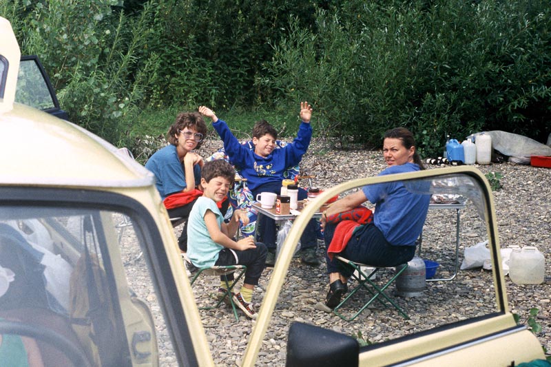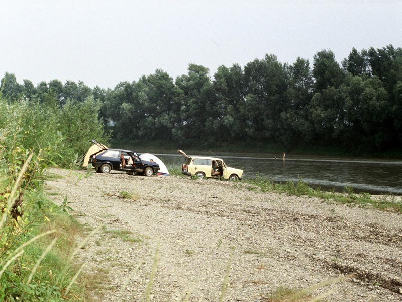 Először a '90-es évek legelején jártunk itt, akkoriban még a falu főutcáján naponta végigvonult a falu gulyája. Mi a Tisza-parton ütöttünk tábort egy hétre, élveztük a tiszta vizet és a kavicsos partot. A reggeli mosakodás a finom vízben való úszásból állt. A kavicsok miatt a vízből úgy tudtunk mezítláb kijönni, hogy nem lett sáros a lábunk. A Tisza sodrása itt igen erős, de a nyári vízállás mellett gond nélkül átlábalható. Gyerekeink nagyon élvezték a fürdést a folyó közepén húzódó kavicszátonyon, ahol a víz mélysége mintegy 3 cm volt. A szemben lévő part már Ukrajna kárpátaljai része, esetenként határőrök bukkantak fel mindkét parton, de nem volt jelenlétünk ellen kifogásuk. Remekül lehetett pecázni, sokféle kishalat fogtunk. Még az sem szegte kedvünket hogy a falu félbolond gulyása az orrunk előtt fogott négy darab kilósforma balint, gyakorlatilag őskori módszerrel: a parti bokrokhoz kötött otromba zsinegen szép nagy kampós horog, békával csalizva.