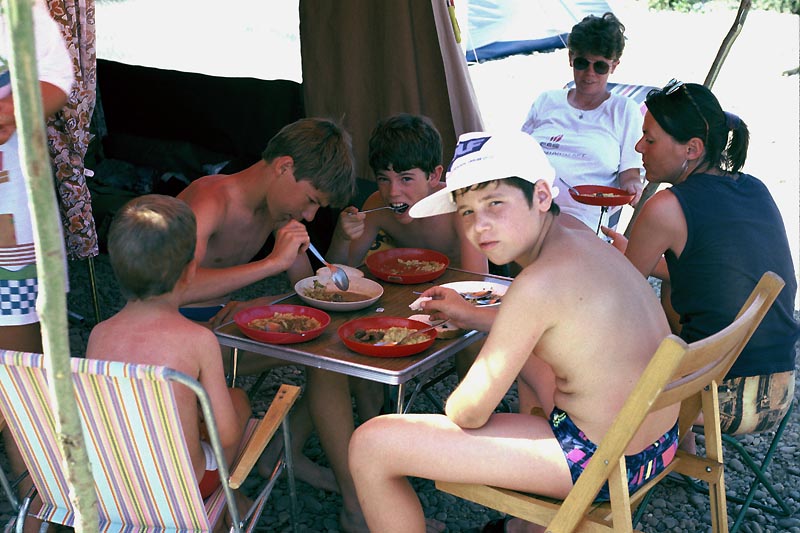 Vannak helyek ahová az ember visszatér, mert a jó helyen szerzett szép emlékek visszacsábítják. Így jártunk mi is a Tisza kavicsos partjával Csécsén. Három család gyerekestül - így töltöttünk itt egy szép hetet sátorban 1995-ben. Fürdés, főzőcske, pecázás, esti tábortűz - mi kell még? Valami kaland: kitaláltuk hogy autóval felmegyünk Tiszabecsre és gumimatracon lecsurgunk a táborhelyig. Így is lett, és emlékezetes vízitúra kerekedett belőle - jó pár kilométer úszva, matracon lebegve vagy a sekély vízben gyalogolva két ország partjai között. Egy aprócska dologról megfeledkeztünk: a háromórás úton már az első órában elkezdtünk fázni a hideg vízben, félóránként meg kellett állnunk a napon feltöltődni meleggel. Megkönnyebbülés volt megérkezni - az egyik képen ezek a pillanatok látszanak. A képet a nejem készítette, aki nem jött velünk a vízi útra, vigyázott a táborra, magára, no meg a legkisebb fiunkra - aki három hónappal később meg is született.